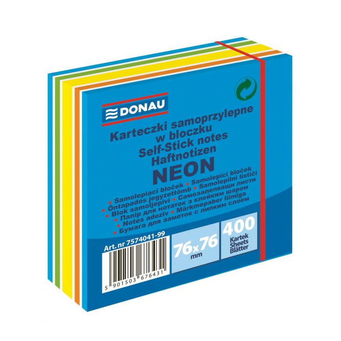 Bloček Donau 76 x 76 mm, mix neónových farieb, modrá, 400 lístkov