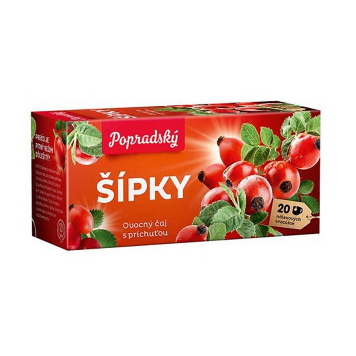 Ovocný čaj v nálevových vreckách s príchuťou šípky, balenie 20 × 2 g.