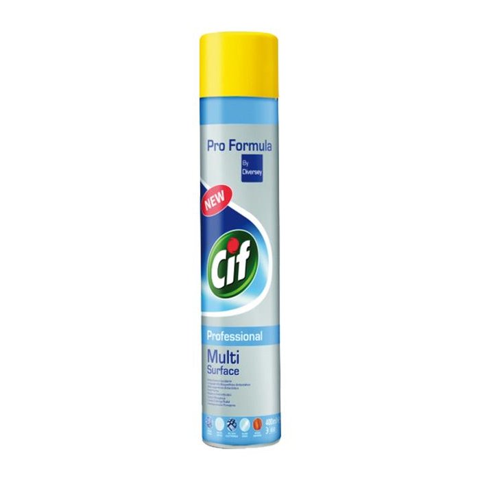 Cif Pro Formula Multi Surface odstraňuje odolné odtlačky prstov a škvrny zo všetkých povrchov, zanecháva žiarivú čistotu bez šmúh.