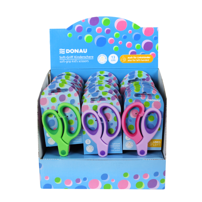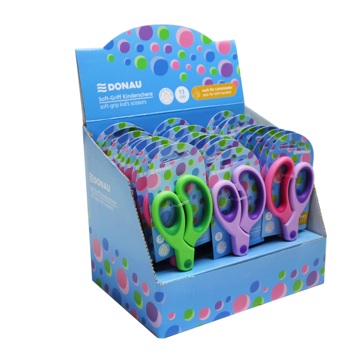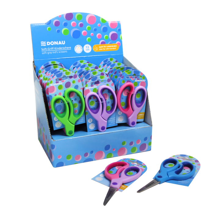 Detské nožnice DONAU Soft Grip okrúhlá čepeľ, 13 cm, mix farieb, displej 30 ks