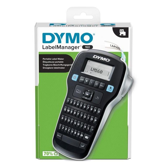 Prenosný a cenovo dostupný model etiketovacieho zariadenia s veľkým displejom. Stačí zadať text, naformátovať ho jedným dotykom inteligentných tlačidiel a vytlačiť ! Jednoduché zadávanie textu, rýchle formátovanie, profesionálny vzhľad a zrozumiteľnosť od zapnutia až po tlač. DYMO LM 160 používa kazetové pásky typu D1 v šírkach 6, 9 a 12 mm. Zdrojom napájania je 6 ks AAA batérií alebo voliteľný napájací adaptér, ktoré nie sú súčasťou zariadenia.