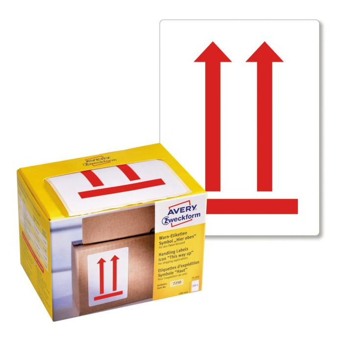 Etikety Avery s varovným symbolom ’ Neklopiť’ 74x100mm na kotúči