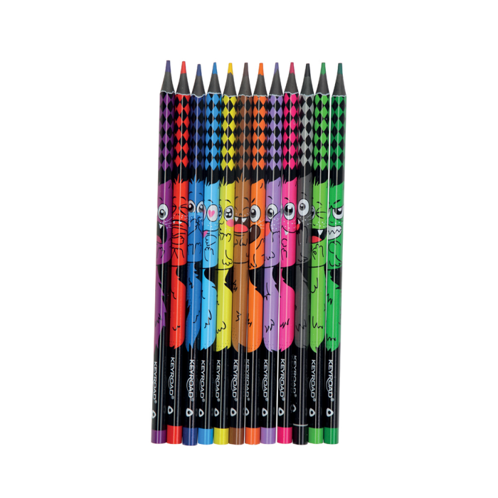 Farbičky trojhranné elastické KEYROAD čierne drevo, 12 ks