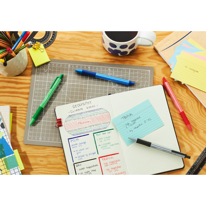 Vďaka svojmu farebnému dizajnu je STABILO pointball colorful sviežim a moderným doplnkom každého stola. Farebne odlíšené telo guľôčkového pera zobrazuje farbu atramentu - už žiadne hádanie, akou farbou píše. Je to skvelý nástroj na rýchle písanie, pretože kvalitný atrament v guľôčkovom pere zaisťuje hladký a rovnomerný tok so šírkou čiary 0,5 mm. Mäkká zóna úchopu poskytuje pohodlné uchopenie aj pri dlhšom písaní. Okrem toho má výrobok certifikát ISCC PLUS, pretože 87 % plastov na biologickej báze použitých na výrobu tela pera pochádza z udržateľných zdrojov (hmotnostná bilancia). Vďaka guľôčkovej náplni STABILO je možné farebnú guľôčku STABILO ľahko dopĺňať znova a znova.