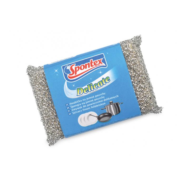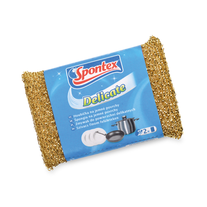 Univerzálna čistiaca hubka pre jemné povrchy. Dokonale čistí bez škrabancov, perfektná na panvice, sklo, porcelán a nerezovú oceľ. Mix farieb zlatá a strieborná.