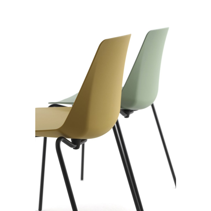 Plastová stolička lastúrového tvaru, oceľová konštrukcia.