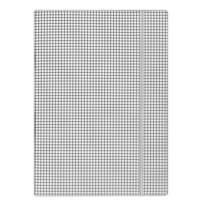 Kartonový obal vyrobený z lepenky s hmotnosťou 400g. Jednostranne potiahnutý vysoko lesklým tlačovým lakom, okrúhla vertikálna guma vo farbe obalu chráni obsah pred vykĺznutím. Károvaná potač. Formát: A4. Farba biela. Rozmery 232 x 317 mm.