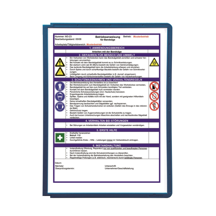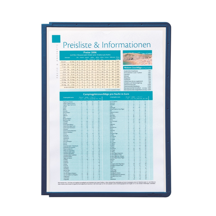 Displejový panel vyrobený z matného antireflexného polypropylénu pre systém Sherpa, kovové držiaky a rotačný stojan. Vložený materiál je kopírovateľný a skenovateľný. Pevný farebný rám s pozíciami pre indexy. Formát A4. Balenie 5 ks.