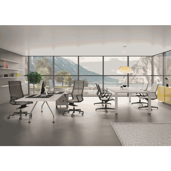 • moderná konferenčná stolička so sieťovinou na sedadle a operadle