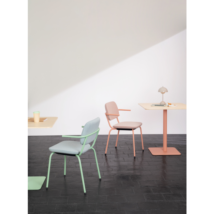 Normo je nová stolička pre prácu a rokovanie. Je všestranná a odolná, bola vytvorená v súlade s princípmi cirkulárnej ekonomiky.Recyklovateľný výrobok - na konci jeho životnosti je možné všetky súčiastky rozobrať, rozdeliť na suroviny a plne recyklovať. Je vyrobená s použitím recyklovaných materiálov, namiesto prírodných - z 100% recyklovaného polypropylenu.Stolička má kovovú kostru, model s krátkými podrúčkami je možné zavesiť na dosku stola. Je stohovateľná pre ľahké skladovanie a prepravu/ až 4 stoličky/.Stolička je vyrobená bez lepidel a sponiek.Uhlíková stopa pri jej výrobe je znížená na polovicu - len 28 kg CO2 . K dispozici je vo 12 konfiguráciach.