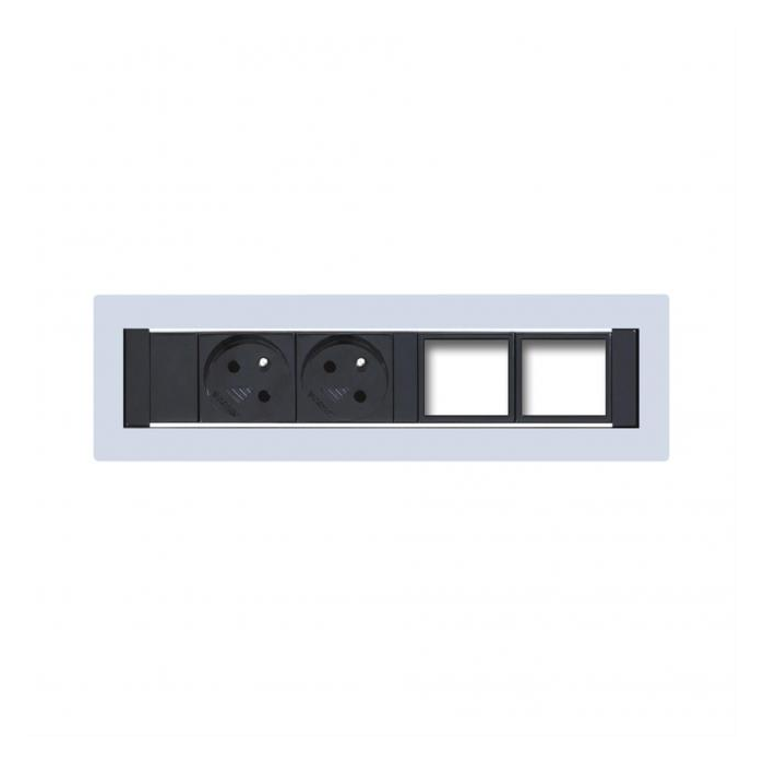 Pokiaľ Vám nevyhovuje žiadny z pevne daných modelov zásuvkových panelov, pripravili sme pre Vás konfigurovateľné panely v dvoch verziách a dvoch farebných prevedeniach. Moduly elektrických zásuviek sú zabudované už od výroby. Ďalšie moduly sú prázdne a umožňujú Vám vybrať si konektory, ktoré na Vašom pracovisku potrebujete. Do voľného priestoru vložíte rámček, do ktorého nasadíte konektor v štandardizovanom prevedení. V prípade potreby môžete po čase vymeniť pôvodne vybrané konektory za iné.