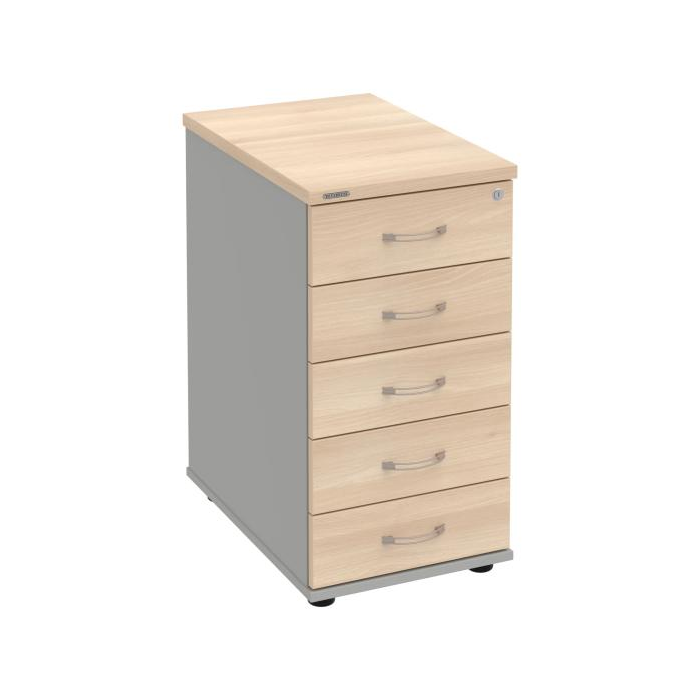 Kontajnery - všetko uložené a vždy poruke. Kontajnery sa väčšinou umiestňujú pod stoly. Mobilné modely sú vybavené kolieskami, je možné ich premiestniť podľa potreby. Základným materiálom korpusov je kvalitná laminovaná drevotriesková doska hrúbky 18 mm. Pre dlhšiu životnosť je na horný diel korpusu použitá doska, ktorej hrúbka je 25 mm. Korpusy a čelá zásuviek sú chránené proti poškodeniu hranou ABS 2 mm. Kontajnery sú vybavené zámkom s centrálnym zamykaním. Vďaka integrovanému systému STOP-CONTROL s centrálnym zámkom u väčšiny kontajnerov sa nemusíte báť prevrhnutiu kontajnera alebo prípadného privretia ruky. Systém zaručí, že pri otvorení jednej zásuvky sa ostatné zásuvky automaticky zablokujú. Zásuvky sú z plastu, ktorý je ľahko umývateľný a vhodný pre jednoduchú údržbu. Praktickou súčasťou vrchnej zásuvky je prehľadný organizér a priestorové deliace priečky. Vaše ceruzky, sponky a ďalšie kancelárske potreby budú vždy na poriadku. Organizér a deliace priečky sú súčasťou každého kontajnera. Na kontajnery Hobis sa vzťahuje päťročná záruka.