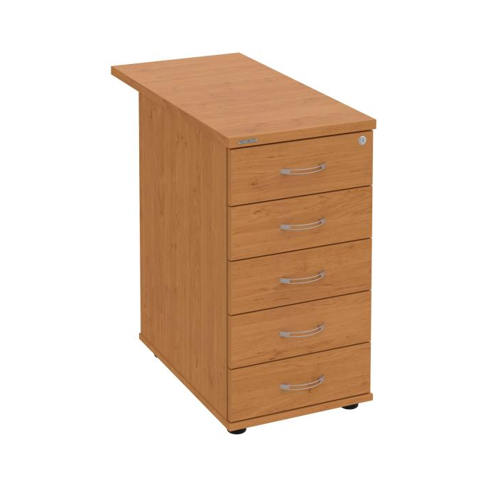 Kontajnery - všetko uložené a vždy poruke. Kontajnery sa väčšinou umiestňujú pod stoly. Mobilné modely sú vybavené kolieskami, je možné ich premiestniť podľa potreby. Základným materiálom korpusov je kvalitná laminovaná drevotriesková doska hrúbky 18 mm. Pre dlhšiu životnosť je na horný diel korpusu použitá doska, ktorej hrúbka je 25 mm. Korpusy a čelá zásuviek sú chránené proti poškodeniu hranou ABS 2 mm. Horná doska ma hĺbku 80 cm. Kontajnery sú vybavené zámkom s centrálnym zamykaním. Vďaka integrovanému systému STOP-CONTROL s centrálnym zámkom u väčšiny kontajnerov sa nemusíte báť prevrhnutiu kontajnera alebo prípadného privretia ruky. Systém zaručí, že pri otvorení jednej zásuvky sa ostatné zásuvky automaticky zablokujú. Zásuvky sú z plastu, ktorý je ľahko umývateľný a vhodný pre jednoduchú údržbu. Praktickou súčasťou vrchnej zásuvky je prehľadný organizér a priestorové deliace priečky. Vaše ceruzky, sponky a ďalšie kancelárske potreby budú vždy na poriadku. Organizér a deliace priečky sú súčasťou každého kontajnera. Na kontajnery Hobis sa vzťahuje päťročná záruka.