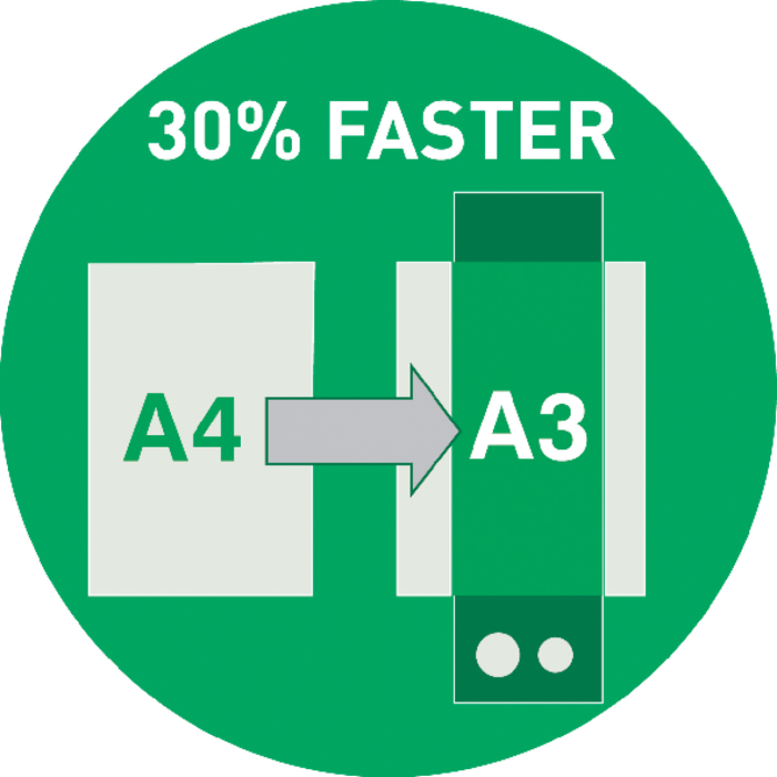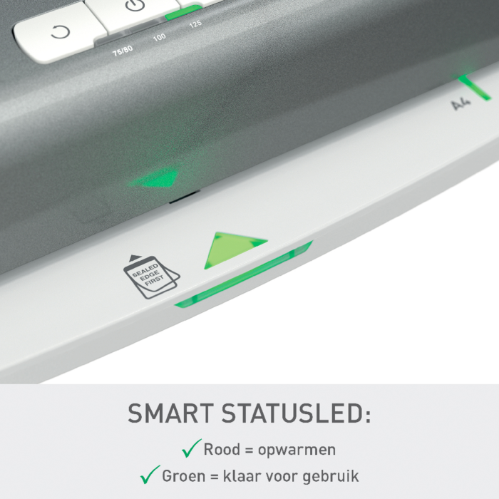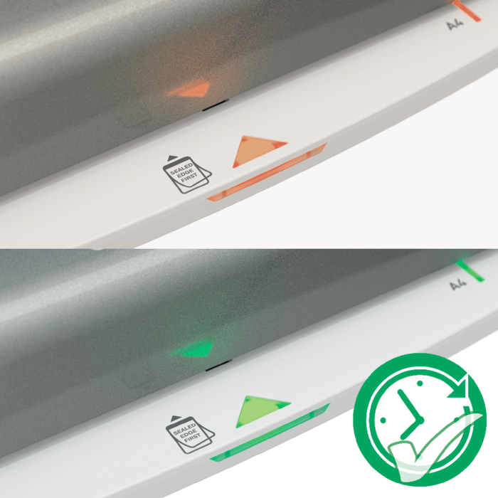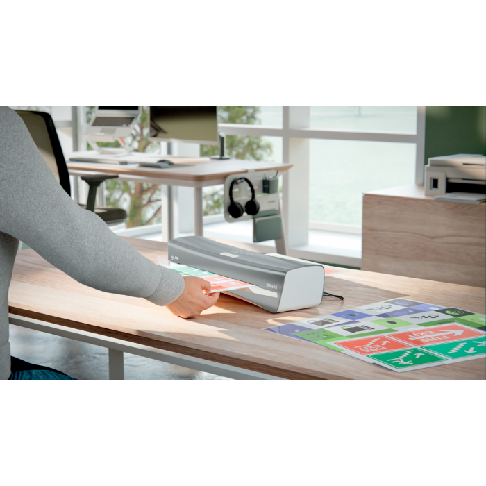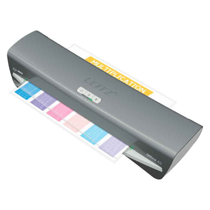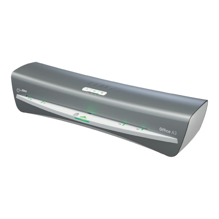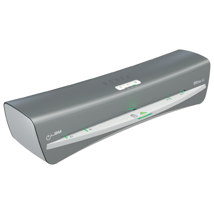 Moderný a kompaktný laminovací prístroj Leitz iLAM Office spája štýl a efektivitu. Tento laminátor vo formáte A3 garantuje ľahké laminovanie, vyznačuje sa rýchlym intervalom zahrievania len za 1 minútu, dokument A4 v 80-mikrónovej kapse na laminovanie zalaminuje už za obyčajných 36 sekúnd. Pomocou intuitívneho dotykového panelu si môžete vybrať jedno z troch nastavení hrúbky vrecka, prípadne využiť tlačidlo spätného chodu pre ľahké vybratie zaseknutej laminovacej kapsy. Inovatívna stavová SMART LED dióda využíva svetelné a zvukové signály: červená dióda znamená zahrievanie, zelená so zvukovým upozornením oznamuje pripravenosť na laminovanie, blikajúca červená dióda znamená automatické vypnutie po 15 minútach nečinnosti. Navyše šikovné vstupné navádzacie LED diódy zabezpečujú dokonalé vyrovnanie vrecka tak, aby sa zabránilo jeho zaseknutiu. Určené na kapsy od 75 do 125 mikrónov. TUV/GS, CE certifikácia. Šedá a biela farba.