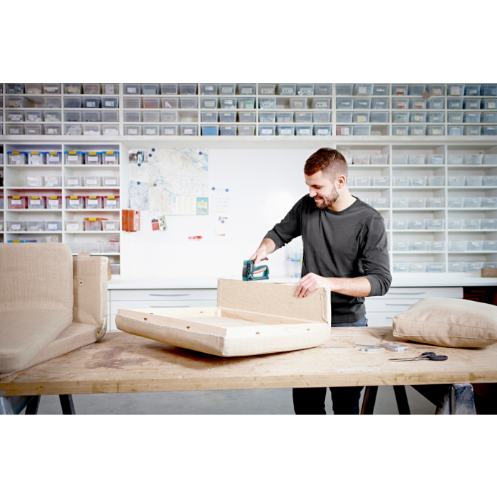 Malá profesionálna nastreľovačka s nízkym spätným nárazom s krytom zo zinkového odliatku pre rozličné práce v profesionálnych aplikáciách pre domácich majstrov a pre dielne. Posuvný mechanizmus na ľahké prepínanie medzi tenkými spinkam a spinkami z plochého drôtu, ergonomická mäkká rukoväť, spodný plniaci zásobník s bezpečnostnou poistkou na ľahké plnenie spinkami, zámok rukoväte pre skladovanie, kontrolné okienko na sledovanie stavu naplnenia zásobníka. Kapacita: (A) spinky 150 ks, (D) spinky 85 ks.
