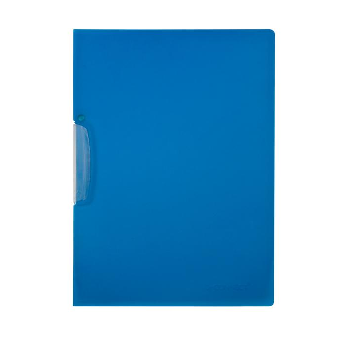 Obal z pevného polypropylénu s priehľadnou prednou stranou vo farbe obalu a priehľadným vyklápacím klipom z plastu. Formát A4. Kapacita 1 - 30 listov. Väčšie balenie 25 ks. Farba modrá.