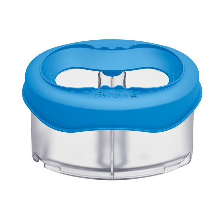 Nádoba na vodu - priehľadná s úchytom, ktorý umožňuje pripojiť nádobu na vodové farby, aby sa zamedzilo vyliatiu vody. Kompatibilná s vodovými farbami Pelikan K12 a Space+. Na vrchu nádoby umiestnený držiak na položenie štetca. Farba modrá.
