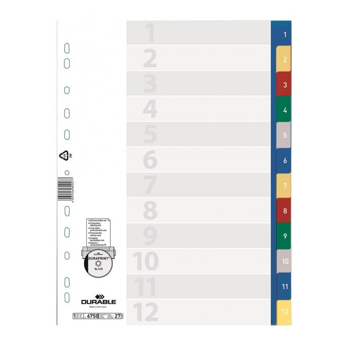 Plastový rozraďovač DURABLE 1-12 farebný