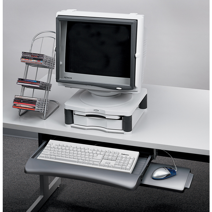 Ergonomická dizajnová zásuvka na ľubovoľnú klávesnicu, šetriaca pracovnou plochou. Vybavená sklápacou podložkou pod myš s možnosťou jej upevnenia sprava alebo zľava. Inštalácia police v troch rôznych výškach z dôvodu väčšieho komfortu. Systém na vedenie káblov, hladké posúvanie po guličkových ložiskách. Rozmery 559 x 295 x 59 mm.