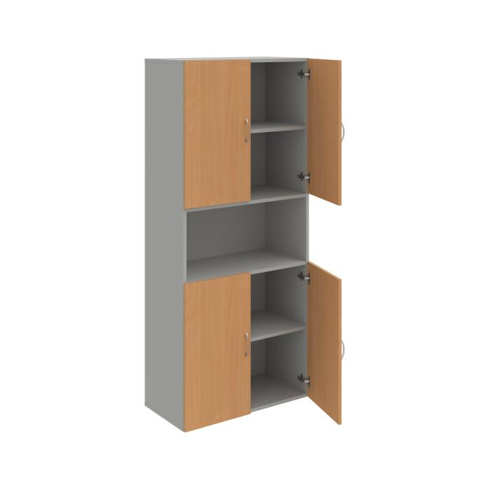 Kombinovaná skriňa - dvere/nika. Dôraz na funkčnosť a cenu. Kvalita a variabilita s nízkymi obstarávacími nákladmi. Materiály výrobcov z Európskej únie. Obojstranne pohľadový chrbát. Zabezpečenie políc proti náhodnému vysunutiu. 45 rôznych prvkov pre Vaše potreby a požiadavky. V našej ponuke nájdete skriňové moduly výšky 185 cm, 111 cm alebo 74 cm a šírky 80 cm alebo 40 cm. Hĺbka všetkých modelov skríň radu Drive je 40 cm (42 cm s dverami). Chrbát, vyrobený z 3 mm hrubých dosiek HDF, je obojstranne pohľadový, takže skrine môžete použiť ako priestorový deliaci prvok. Vďaka polohovateľným policiam (hrúbky 18 mm) je možné priestor prispôsobiť Vašim predstavám. Základná výška úložného priestoru je prispôsobená výške štandardného šanónu. Dvere sú chránené 2mm hranou ABS a osadené kvalitným kovaním s doživotnou zárukou. Okrem plných a presklených dverí Vám ponúkame aj skrine s roletovým systémom. Pokiaľ sa rozhodnete pre umiestnenie skríň na podlahu, nezabudnite si doobjednať rektifikačné nohy, ktoré nie sú štandardnou súčasťou objednávky. Aby sa zásielka dostala v poriadku až do Vašej kancelárie, dodávame skrine demontované v niekoľkých samostatných a bezpečne zabalených balíkoch. Súčasťou každého balenia je tiež prehľadný návod. Na skrive Drive dostanete záruku 5 rokov.