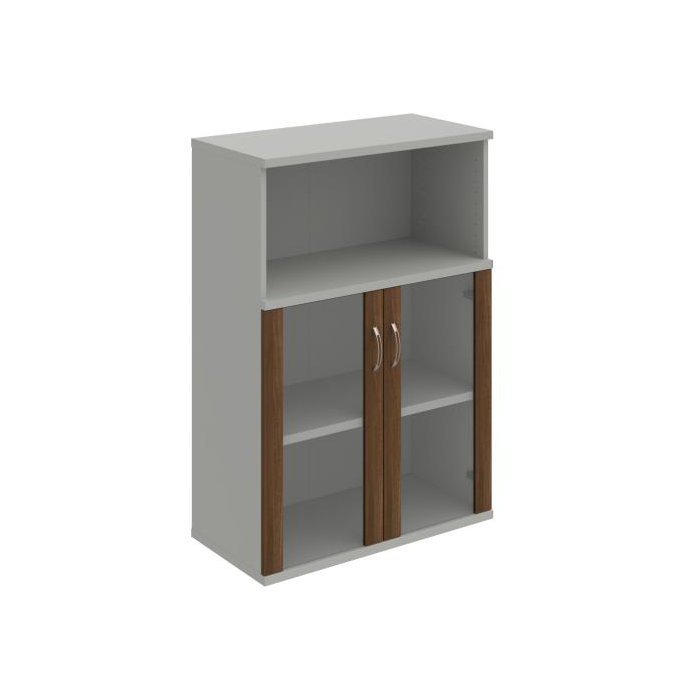 Kombinovaná skriňa - dvere/nika. Kancelárske skrine STRONG majú robustnú konštrukciu a vyššiu nosnosť políc ako bežné kancelárske skrine.V ponuke sú skriňové moduly s výškou 185 cm, 111 cm alebo 74 cm a šírky 80 cm alebo 40 cm. Hĺbka všetkých modelov skriňového radu STRONG je 40 cm.Chrbát, vyrobený z 8 mm hrubých dosák, je obojstranne pohľadový, takže skrine môžete použiť ako priestorový deliaci prvok. Hrúbka samotných políc je 25 mm, čo znamená nosnosť 80 kg na 1 policu.Korpusy, dvierka a police skríň sú olepené odolnou 2mm ABS hranou, ktorá garantuje dostatočnú ochranu proti poškodeniu.