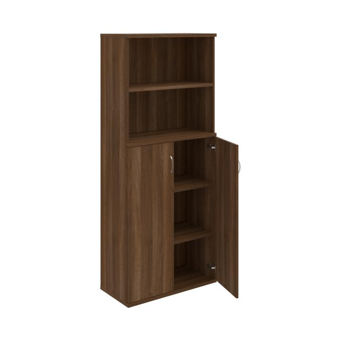 Kombinovaná skriňa - dvere/nika. Kancelárske skrine STRONG majú robustnú konštrukciu a vyššiu nosnosť políc ako bežné kancelárske skrine.V ponuke sú skriňové moduly s výškou 185 cm, 111 cm alebo 74 cm a šírky 80 cm alebo 40 cm.Hĺbka všetkých modelov skriňového radu STRONG je 40 cm.Chrbát, vyrobený z 8 mm hrubých dosák, je obojstranne pohľadový, takže skrine môžete použiť ako priestorový deliaci prvok. Hrúbka samotných políc je 25 mm, čo znamená nosnosť 80 kg na 1 policu.Korpusy, dvierka a police skríň sú olepené odolnou 2mm ABS hranou, ktorá garantuje dostatočnú ochranu proti poškodeniu.