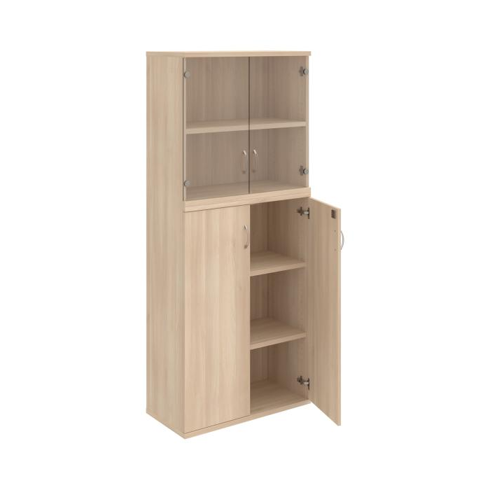 Kombinovaná skriňa - dvere/nika. Kancelárske skrine STRONG majú robustnú konštrukciu a vyššiu nosnosť políc ako bežné kancelárske skrine.V ponuke sú skriňové moduly s výškou 185 cm, 111 cm alebo 74 cm a šírky 80 cm alebo 40 cm. Hĺbka všetkých modelov skriňového radu STRONG je 40 cm.Chrbát, vyrobený z 8 mm hrubých dosák, je obojstranne pohľadový, takže skrine môžete použiť ako priestorový deliaci prvok. Hrúbka samotných políc je 25 mm, čo znamená nosnosť 80 kg na 1 policu.Korpusy, dvierka a police skríň sú olepené odolnou 2mm ABS hranou, ktorá garantuje dostatočnú ochranu proti poškodeniu.