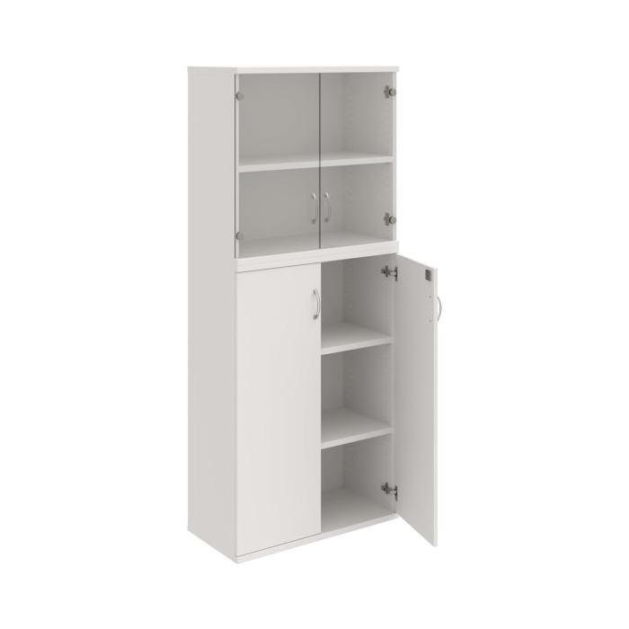 Kombinovaná skriňa - dvere/nika. Kancelárske skrine STRONG majú robustnú konštrukciu a vyššiu nosnosť políc ako bežné kancelárske skrine.V ponuke sú skriňové moduly s výškou 185 cm, 111 cm alebo 74 cm a šírky 80 cm alebo 40 cm. Hĺbka všetkých modelov skriňového radu STRONG je 40 cm.Chrbát, vyrobený z 8 mm hrubých dosák, je obojstranne pohľadový, takže skrine môžete použiť ako priestorový deliaci prvok. Hrúbka samotných políc je 25 mm, čo znamená nosnosť 80 kg na 1 policu.Korpusy, dvierka a police skríň sú olepené odolnou 2mm ABS hranou, ktorá garantuje dostatočnú ochranu proti poškodeniu.