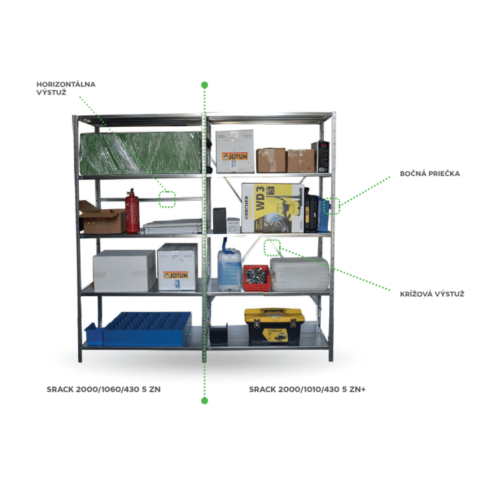 Bezskrutkové policové regály sú vhodné do archívov, kancelárii, skladov, autoservisov, dielní, ale aj moderných domácností. Ich prednosťou je rýchla montáž, vysoká nosnosť políc, stabilita a životnosť. Jednotlivé konštrukčné prvky sú vyrobené z pozinkovaného materiálu, ktorý zabezpečuje vysokú odolnosť a trvalú ochranu. Police sa jednoducho montujú bez nutnosti skrutkovania a sú prestaviteľné po 25 mm. Regály SRACK sú dostupné vo viacerých rozmeroch.