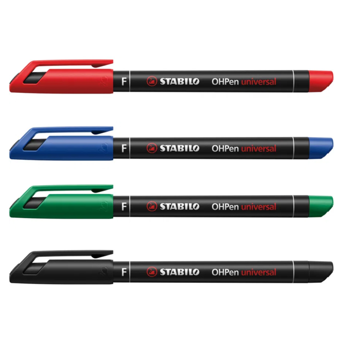 Permanentné popisovače na popisovanie takmer všetkých hladkých povrchov. Nekĺzavá úchytová zóna, praktický klip, bez vrchnáka vydrží až 3 dni. Väčšie balenie 10 ks v jednej farbe. STABILO® OHPen universal Fine (F). Hrot okrúhly, šírka stopy 0,7 mm. Farba modrá.