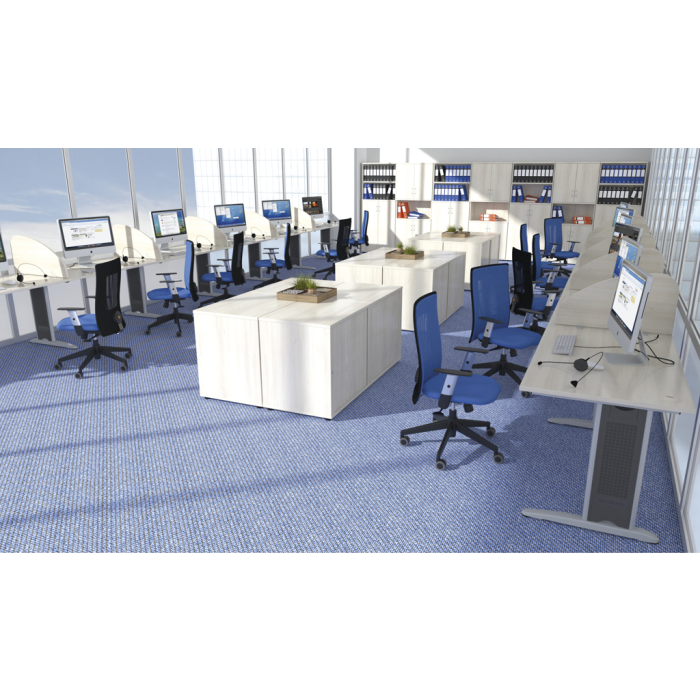 Kancelárský nábytok Flex sa vyznačuje elegantným dizajnom a originalitou technického riešenia. Pracovné dosky s optimálnými rozmermi a tvarom využívajú ergonomicky a efektívne celú pracovnú plochu. Pracovná doska stola má hrúbku 25 mm a je olepená 2mm ABS hranou, ktorá stoly pomáha chrániť pred poškodením. O káble od PC alebo stolovej lampy, sa postará praktická priechodka, ktorá káble jednoducho zvedie pod dosku, kde si s nimi poradia šikovne skonštruované držiaky. Moderné kovové nohy vás oslovia súčasným dizajnom a funkčnosťou. Prepojené sú teleskopickým káblovým kanálom, vďaka ktorému je stôl dokonale stabilný aj bez pracovnej dosky. Okrem toho slúži kanál aj ako elegantný úkryt pre vedenie všetkej kabeláže vášho PC, ktorá je potom pod plastovým krytom kovovej nohy zvedená k podlahe. Tento spôsob vychádza v ústrety aktuálnym trendom kompletne skrytej kabeláže.