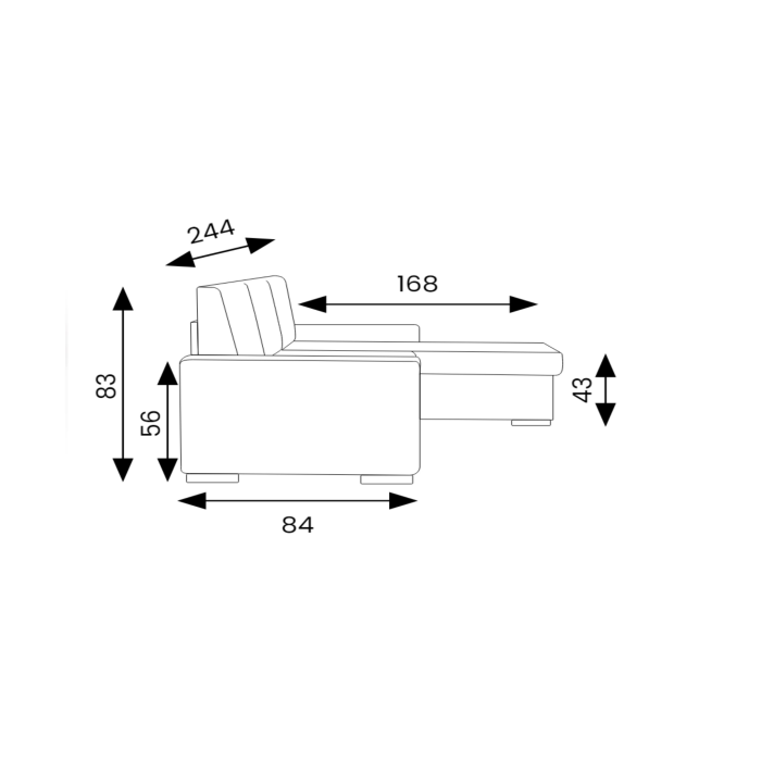• možnosť pravého alebo ľavého predĺženého rohu (na obrázku je s ľavým rohom - z pohľadu sediaceho)