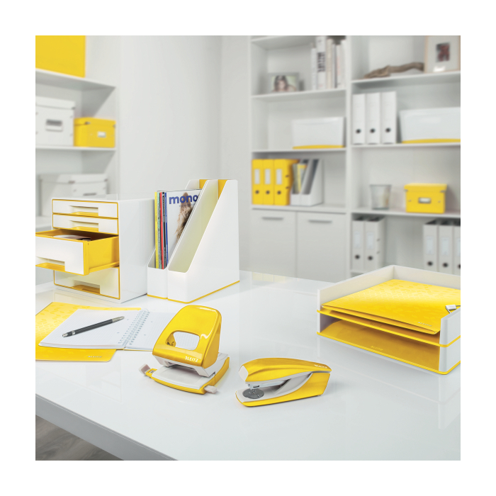 Sada zošívačka a dierovačka Leitz WOW mini žltá