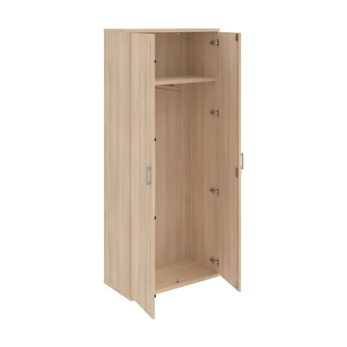 Kancelárske skrine STRONG majú robustnú konštrukciu a vyššiu nosnosť políc ako bežné kancelárske skrine.V ponuke sú skriňové moduly s výškou 185 cm, 111 cm alebo 74 cm a šírky 80 cm alebo 40 cm.Hĺbka všetkých modelov skriňového radu STRONG je 40 cm.Chrbát, vyrobený z 8 mm hrubých dosák, je obojstranne pohľadový, takže skrine môžete použiť ako priestorový deliaci prvok. Hrúbka samotných políc je 25 mm, čo znamená nosnosť 80 kg na 1 policu.Korpusy, dvierka a police skríň sú olepené odolnou 2mm ABS hranou, ktorá garantuje dostatočnú ochranu proti poškodeniu.
