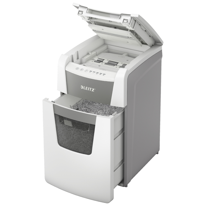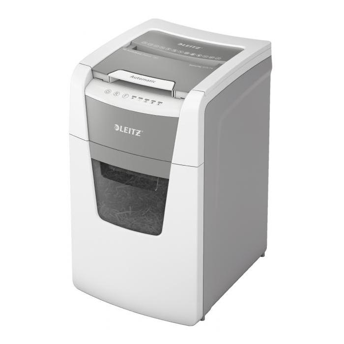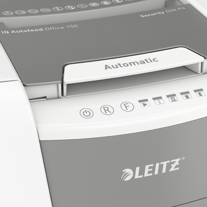 Plnoautomatická skartovačka na papier od firmy Leitz s jedinečnou čistou vyprázdňovacou funkciou. Je taká inteligentná, že potichu pracuje sama, len vložíte stoh papiera (vrátane kancelárskych sponiek a sponiek do zošívačky), zatvoríte veko a môžete ísť za svojou robotou. Ideálna na používanie v kanceláriách. Dôveryhodná a vysokovýkonná skartovačka s automatickým podávaním, s funkciou proti zaseknutiu papiera, tichá a s dlhou dobou prevádzky (30 minút). Automaticky skartuje 150 hárkov A4 na úrovni zabezpečenia P-4 (4 × 28 mm) s krížovým rezom do veľkého 44l koša. Jednoduché ovládanie pomocou dotykových prvkov.