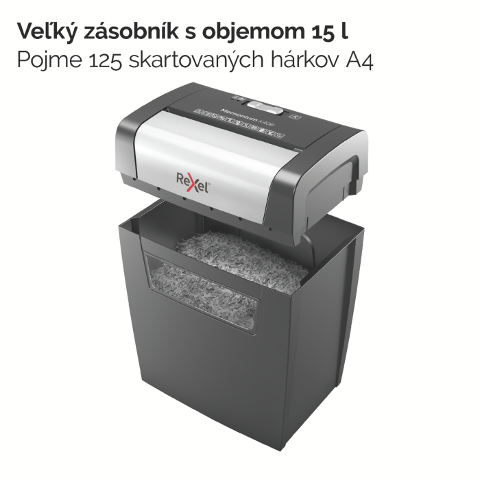 Jednoducho skartuje rôzne druhy dokumentov vrátane drôtikov do zošívačiek