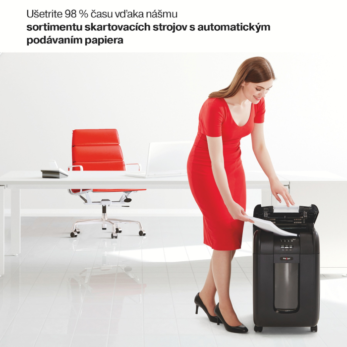 Skartovačky s automatickým podávačom skracujú o 98 % čas, ktorý strácate skartovaním, a preto s nimi ušetríte tak čas, ako aj peniaze. Skartovačka Auto+ 750X automaticky skartuje až 750 hárkov (80 g/m2) krížovým rezom na úrovni zabezpečenia P4 (4 × 40 mm).