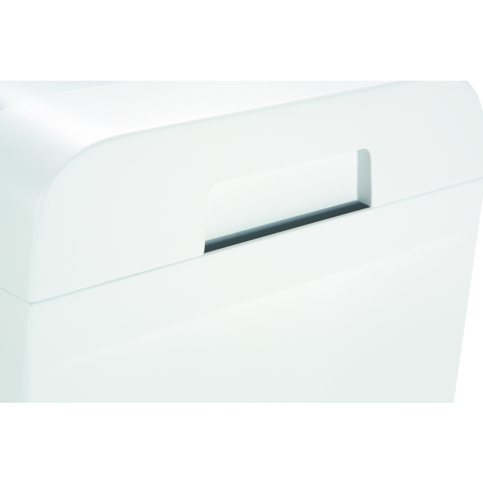 Ochrana údajov pre domácnosť alebo malú kanceláriu. Tento moderný a kompaktný skartovač dokumentov narezaných na častice so samostatnou rezacou jednotkou CD skartuje dáta na pracovisku. CD, DVD, plastové karty a spinky možno ľahko skartovať pomocou samostatnej jednotky na rezanie CD. Rozdrvený materiál sa samostatne separuje. Plný zásobník sa zobrazí na displeji a stroj sa automaticky vypne. Automatický spätný chod eliminuje zasekávanie papiera a zaisťuje plynulú prevádzku. ED indikátor zobrazuje prevádzkový stav zariadenia: napájanie, preťaženie, prehriatie. Integrovaná svetelná závora automaticky spustí zariadenie po vložení papiera do podávača a automaticky sa zastaví po dokončení skartovania. Stav naplnenia odpadovej nádoby je vždy viditeľný cez kontrolné okienko. Veľkosť rezu: 4,5 x 30 mm, kapacita 5 listov. Šírka vstupu 220 mm, objem odpadového koša 18 l. Rozmery 345 x 245 x 385 mm (šxhxv), hmotnosť 4,2 kg.