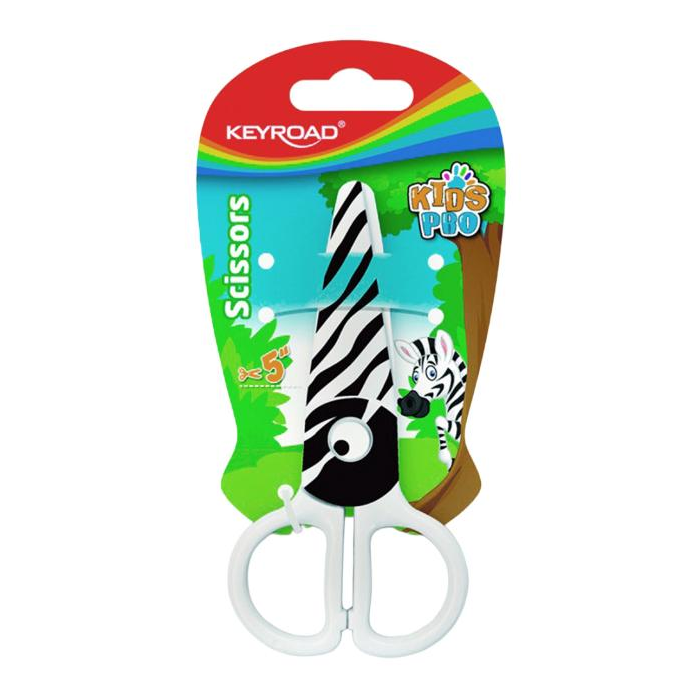 Školské nožnice KEYROAD, 12 cm, blister, motív Zebra, bielo-čierne