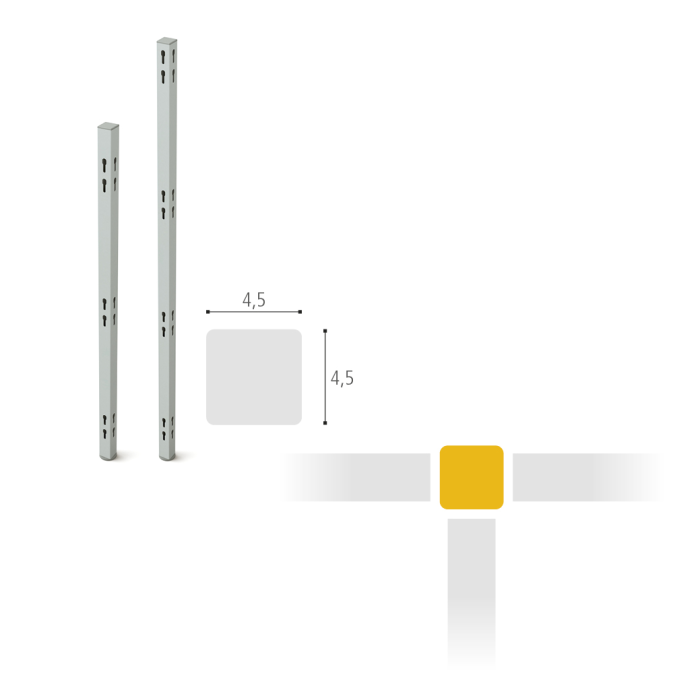 Profilový stĺpik „T“ na napojenie 3 kusov paravánov. Profil 4,5 x 4,5 cm. Cena montáže je 15% z cenníkovej ceny výrobku. Požiadavku na montáž uveďte prosím do poznámky k objednávke. Objednávka tohto produktu je záväzná a produkt nie je možné vrátiť.