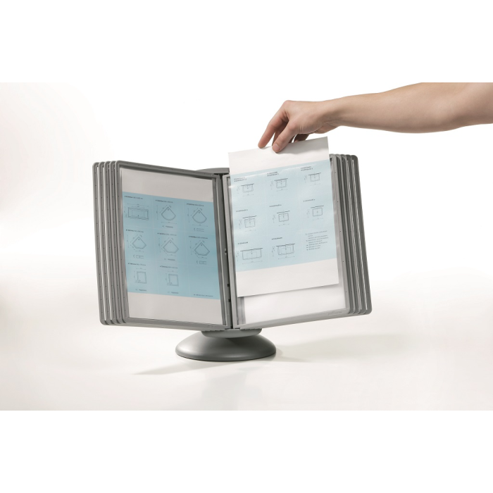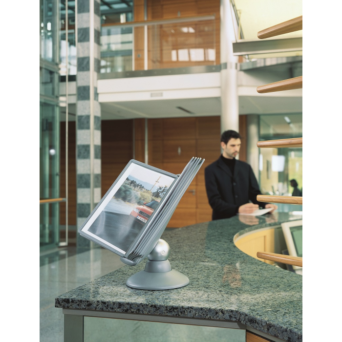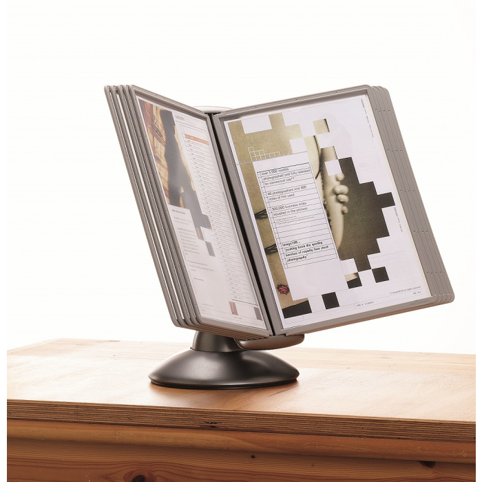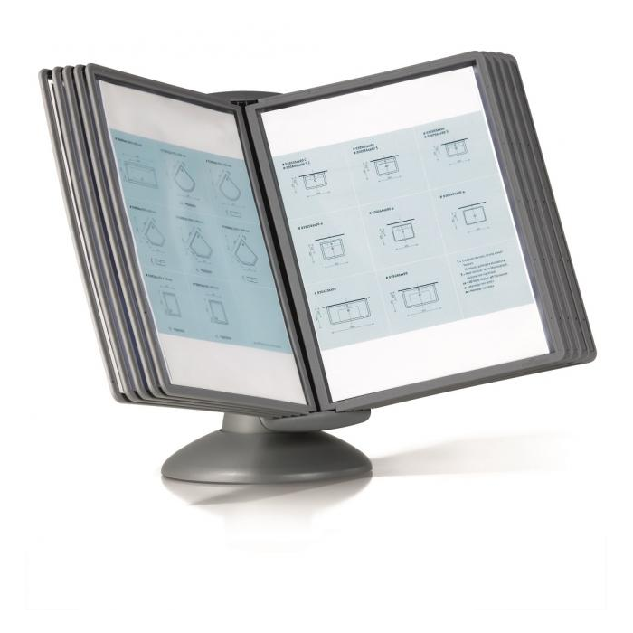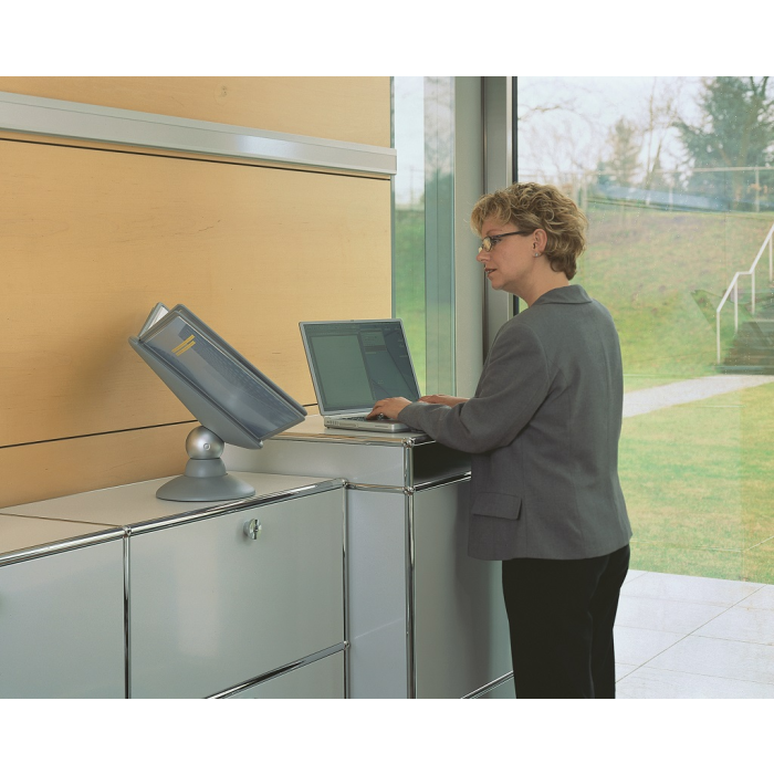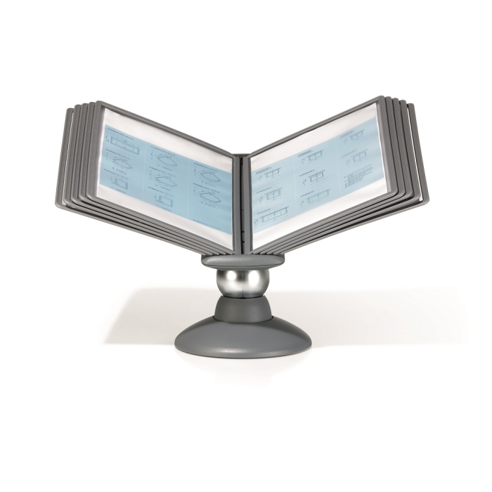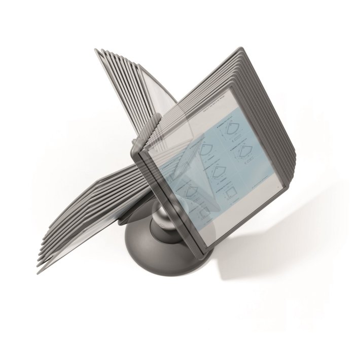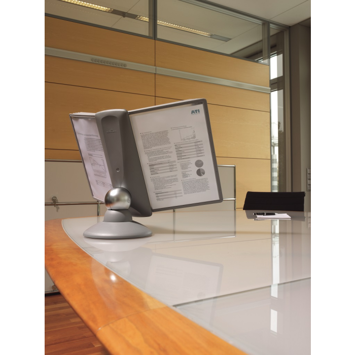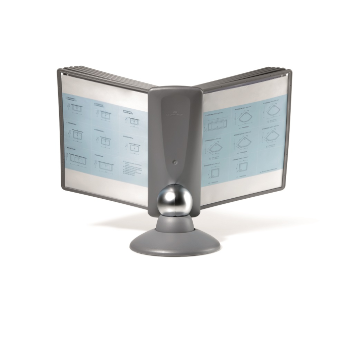 Unikátny dizajn spojený s kreatívnosťou a funkčnosťou stojana na stôl. Guľový kĺb zabezpečuje bezproblémové otáčanie panelov o 360 °, nastaviteľný uhol na čítanie medzi 25 ° a 70 °. Je dodávaný s 10 panelmi. Farba: kĺb lesklá grafitová, držiak a panely matná grafitová.