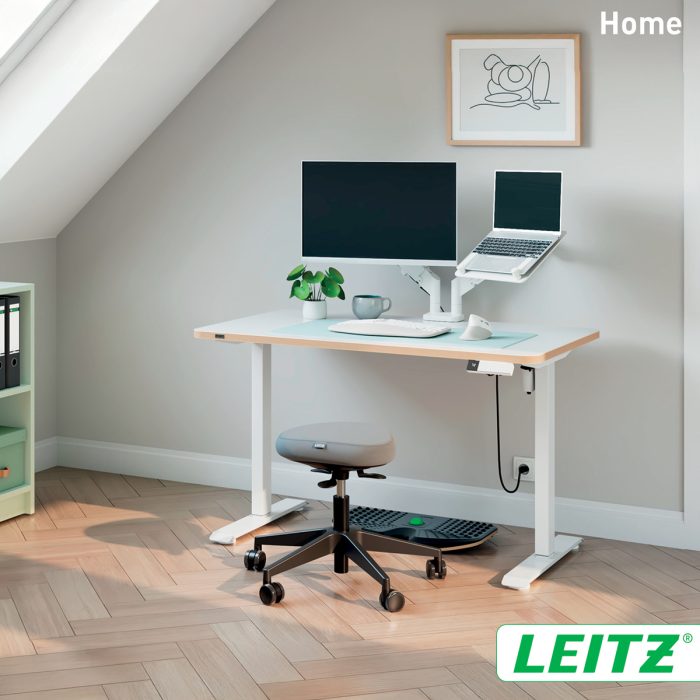 • Kompatibilný s ďalšími výrobkami Leitz Ergo, ako sú priestorovo úsporné držiaky na monitory a organizéry typu pegboard, na uvoľnenie cenného miesta na stole (predávajú sa samostatne).