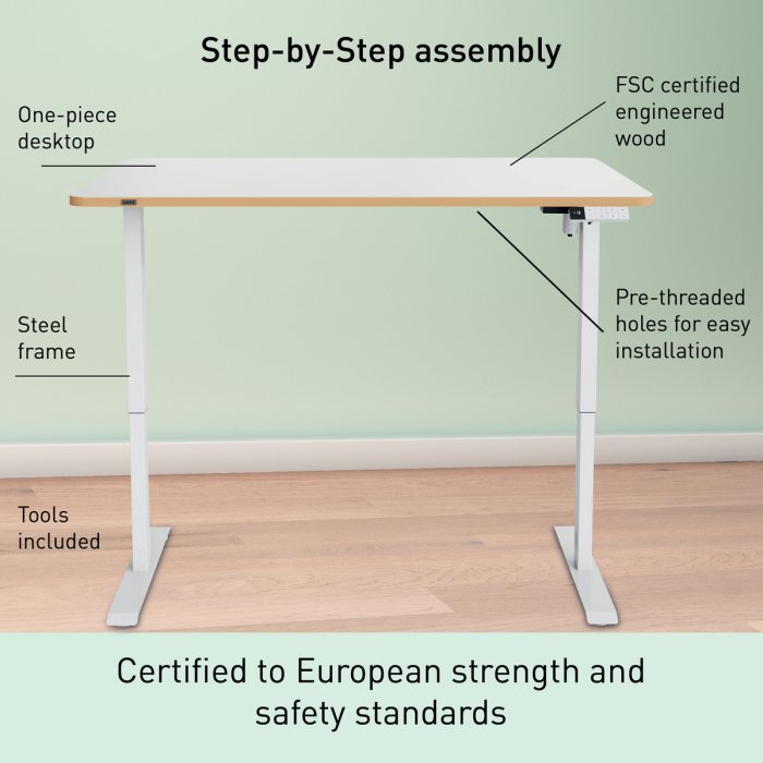 • Navrhnuté na používanie v domácich kanceláriách, priestoroch s vysokou frekvenciou stolov, študentských priestoroch či ako dočasný stôl, s jednoduchým nastavením výšky a 4 obľúbenými predvoľbami výšky