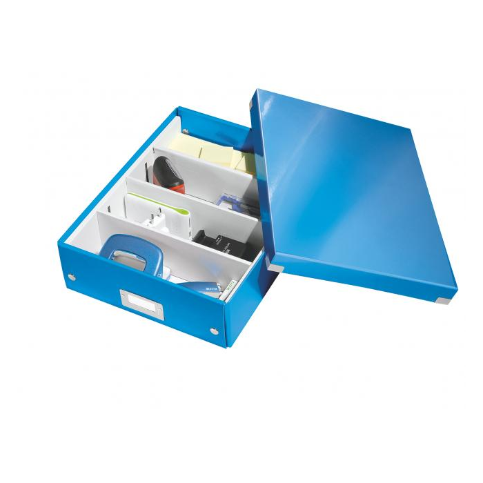 práve nepoužívate. Dodávané rozložené. Väčšie balenie 6 ks. Krabica na usporiadanie káblov, nabíjačiek, slúchadiel, fotografi í a ďalších drobností. Na vylepšenie usporiadania obsahu slúži vnútorný systém priehradiek, s ktorým môžete rozdeliť krabicu na 2 alebo 3 časti a zabrániť tak miešaniu obsahov v jednotlivých častiach. Veľkosť M. Robustné kovové úchyty na jednoduchý prenos. Rozmery 280 × 100 × 370 mm.