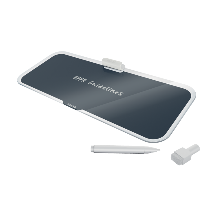 • Sklenená stolná tabuľka Leitz Cosy je unikátny nástroj na opakované písanie poznámok, suchým popisovačom jednoducho napíšete dôležité informácie, kedykoľvek ju utriete a môžete písať znova.
