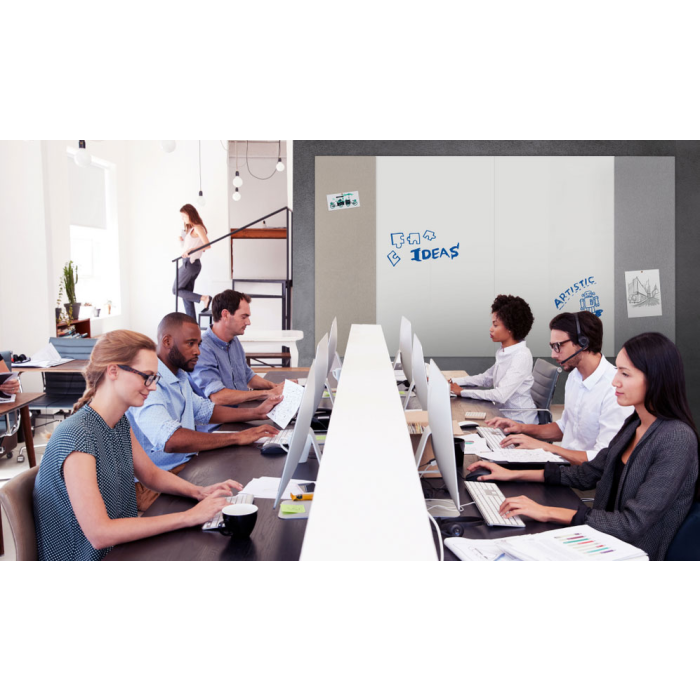 Riešenie, pomocou ktorého vytvoríte z kancelárskej steny nekonečnú plochu na písanie. Wall-up znamená kvalitu a intenzívne používanie. Zmeňte každú stenu na vysokokvalitný keramický, zapisovateľný, zmazateľný a magnetický povrch bielej tabule, odolný voči poškriabaniu. Tabuľové dosky sú určené pre zavesenie vertikálne a je možné ich kombinovať do jedného veľkého písacieho povrchu. Za predpokladu používania príslušenstva Legamaster výrobca garantuje 25-ročnú záruku. Súčasťou balenia je upevňovacia súprava, montážny návod, šablóna na vŕtanie a návod na čistenie. Rozmer 200 x 119,5 cm. Farba biela.
