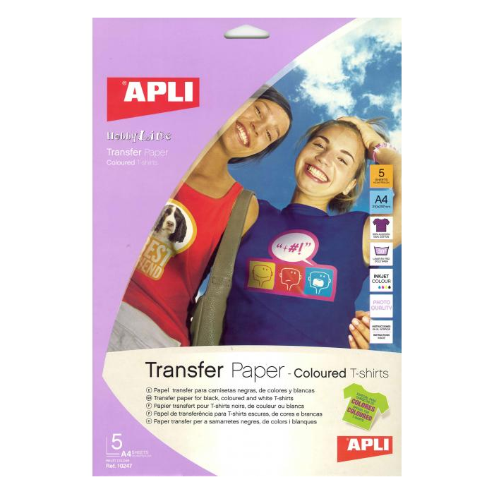 Transferový papier, APLI, A4, na farebné tričká, 5 hárkov