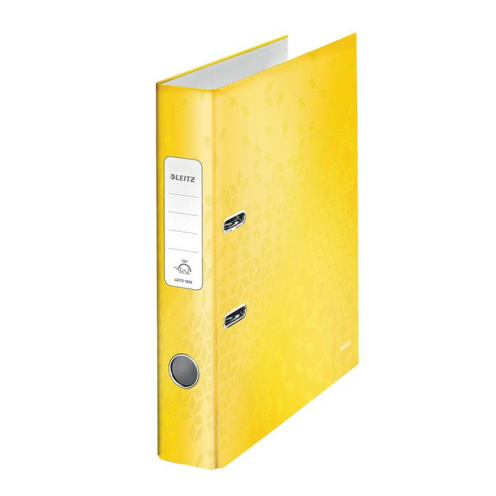 Pákový zakladač rady WOW v žiarivej žltej farbe s dvojfarebným efektom. Unikátna patentovaná mechanika Leitz 180° poskytuje širšie otvorenie, možnosť zakladania väčšieho množstva papierov a o 20 % rýchlejšiu prácu so zakladačom. Vybavený chrbtovým krúžkom, rado zámkom a samolepiacim chrbtovým štítkom, ktorý môže byť v prípade potreby odstránený. Šírka chrbta 5 cm, kapacita 350 listov. Väčšie balenie 10 ks.