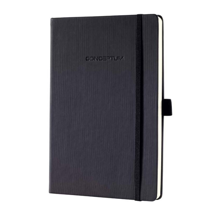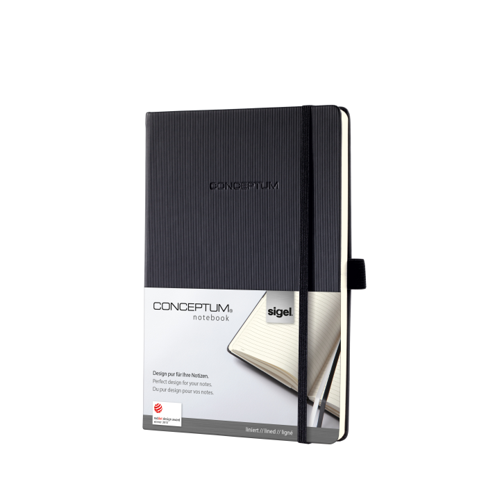 Zápisník s elastickou gumičkou, chrániacou pred nechceným otvorením. Pevná väzba s jemným ryhovaním. Čistý a jednoduchý dizajn až do posledného detailu. Moderný, elegantný, so zameraním na to podstatné. To je CONCEPTUM®, víťaz medzinárodnej ceny za dizajn. Nóbl sofi stikované zápisníky jedinečného štýlu, ktorý môžete vidieť aj cítiť, sú vhodné pre profesionálnu, ako aj pre osobnú potrebu. S citlivosťou volené materiály a vynikajúca kvalita sú skombinované so skutočnou eleganciou. Zápisníky sú vybavené osobným adresárom, uškom na pero, 2 lacetkami, vreckom na uchovanie materiálov s miestom na vizitku, k dispozícii je 20 perforovaných strán pre potreby vytrhnutia poznámok, strany v zápisníku sú číslované.Formát A5, úprava linajková. Počet strán 194. Farba čierna.