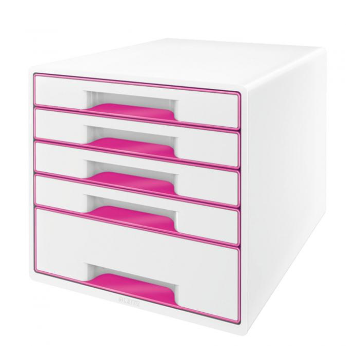Zásuvkový box Leitz WOW s 5 zásuvkami metalický ružový
